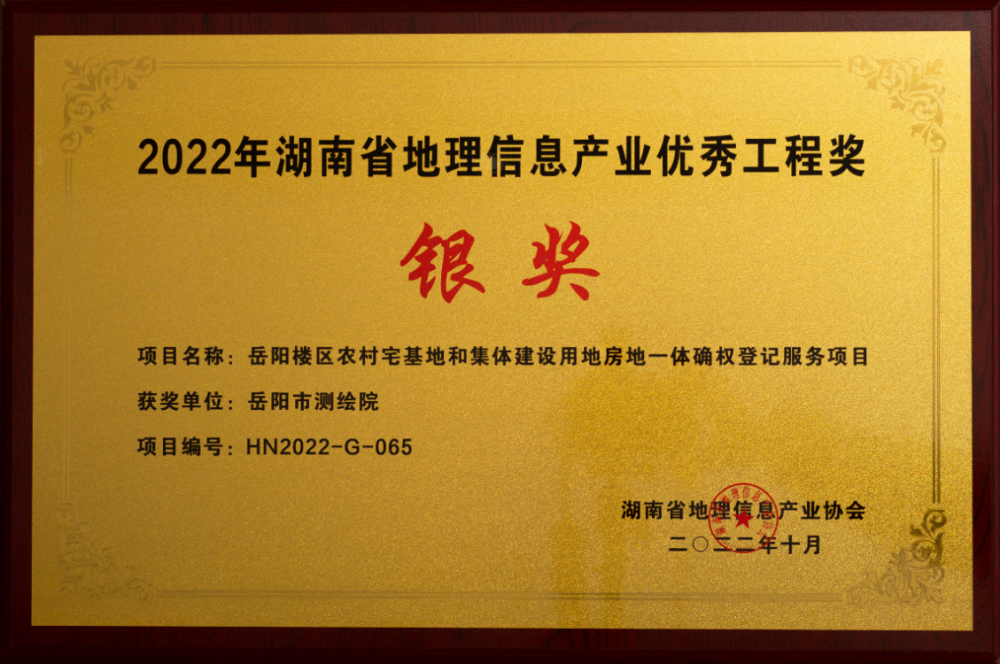 2022年湖南省地理信息产业优秀工程奖银奖